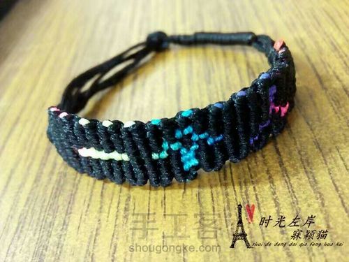 先以彩色玉线为轴编织斜卷结,然后一根根加,直至加完七根哒