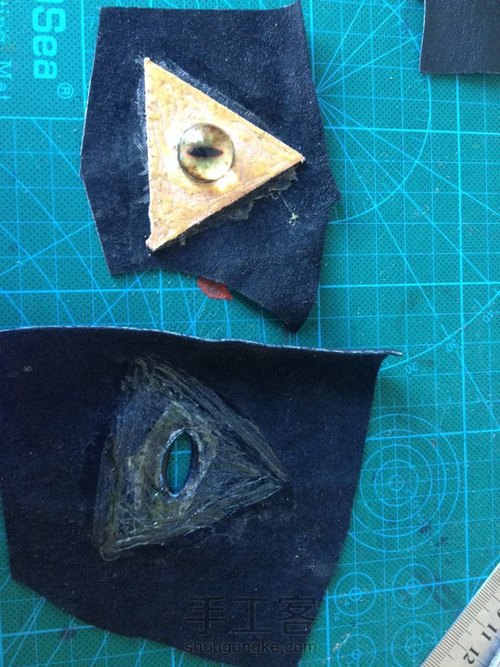 把眼睛粘在裁好的植鞣革上
