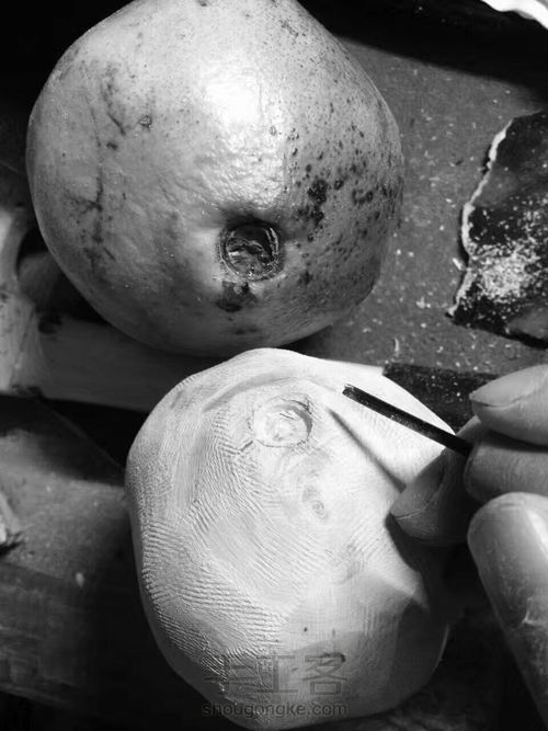 做细节了,把石榴的屁股雕出来了