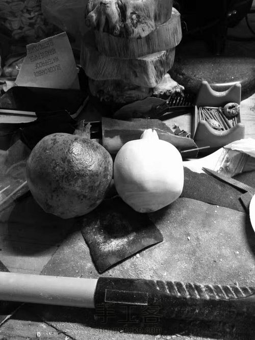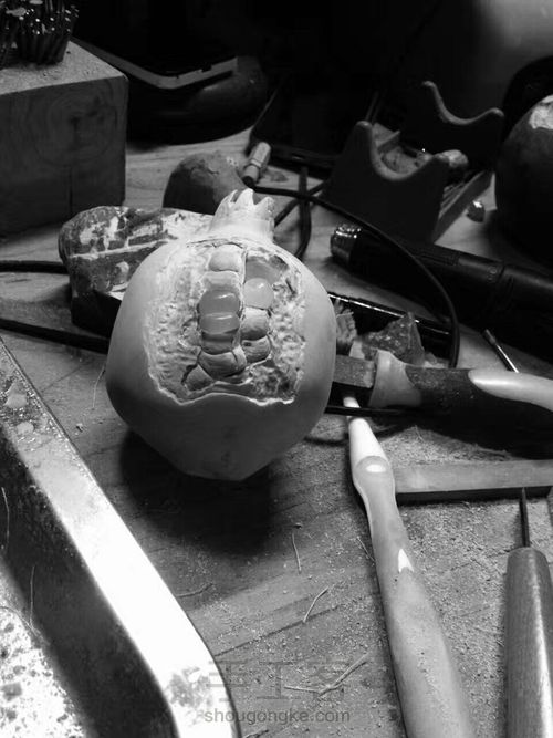 先用木雕刀切出一个石榴的大型出来