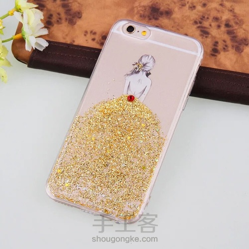 接下来按比例调好ab胶,静放20分钟,礼服上可以加喜欢的配饰,Ab胶水均匀的涂抹在手机壳上,注意不要太多容易溢出来