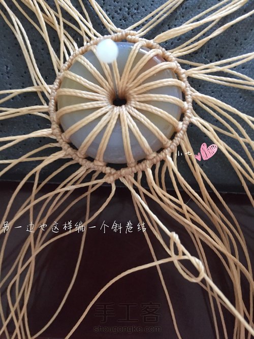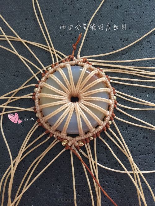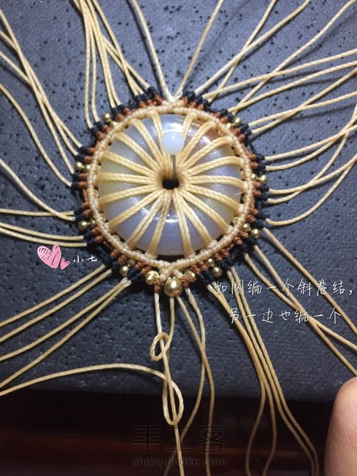 仿了一张外网的图,原图上用的是一个木头的平安扣,挂线会把大部分平安扣遮住,所以这个教程的编法适合平安扣本身不太好看的,或者不太好的平安扣