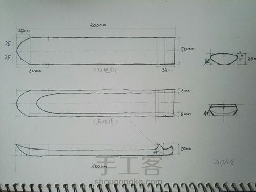 选材:将木料切割成设计尺寸,用铅笔画轮廓。我用的是胡桃木,木质软好处理,主要原因是手头刚好有。