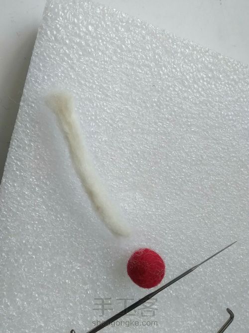 再拿一条细细的白色羊毛(。ò ∀ ó。),戳上去(详情请见“萌萌的小蛋卷”)
