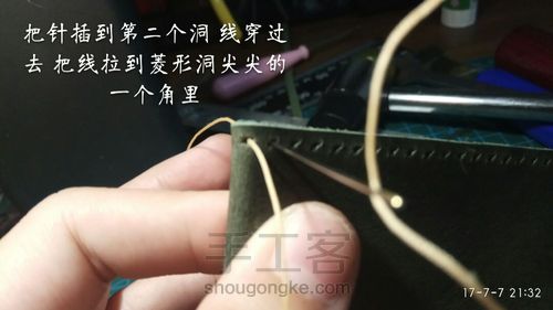 皮子厚的用螺丝刀把线头戳进皮子里去也可以