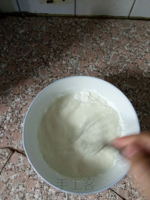 所以碗里还没有倒干净的粉就可以随着水一起倒进去了