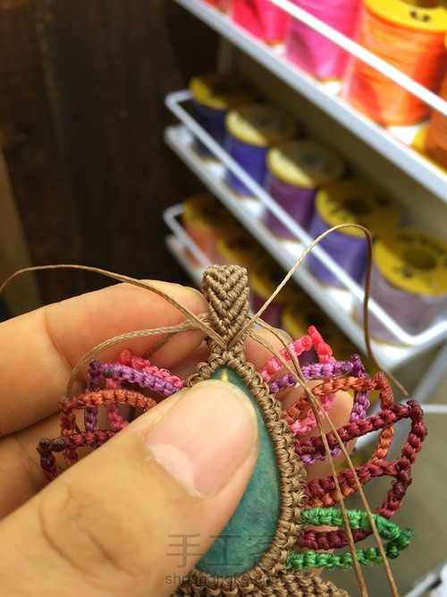 :其实挺好编的,就是要算一下整个水滴上有几个雀头结,然后找出相对比较合适的挂线地方。然后花瓣的弧度要调好,我就觉得这个还不是太好看,后面再编会继续完善,再来修改教程。