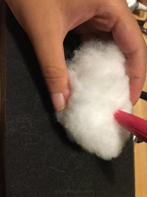 :注意衔接处用细针针尖修饰一下遮盖住针孔,填充棉打底时候一定要戳实,后面戳制就会比较容易。