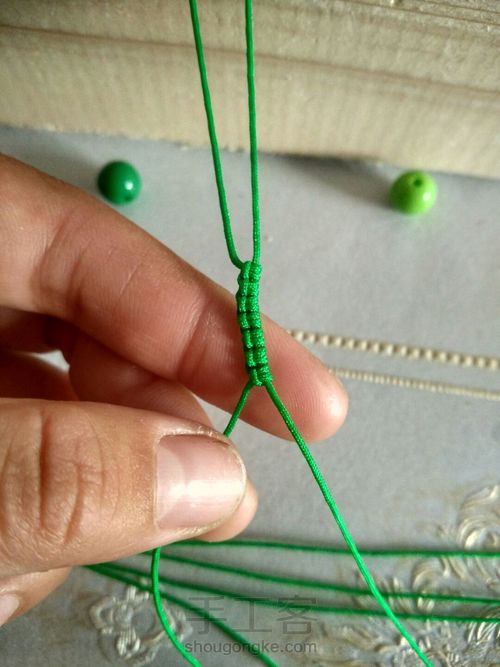 右边第二根做轴向左编斜卷结