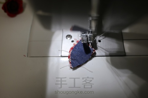 上花边,我用的是手缝先做出内扣形状,(也可以用胶固定)再上机缝好。