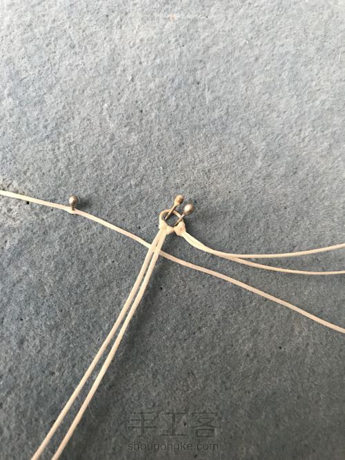 取一个5cm银环,用云雀结挂两根80cm蜡线
