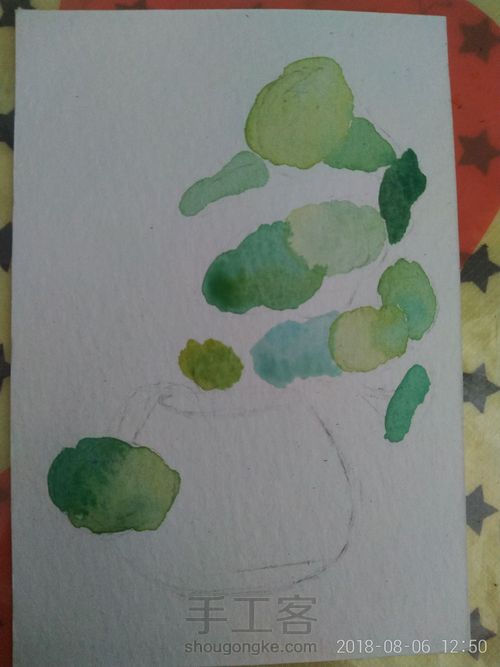 第二步,用橡皮擦掉铅笔印记,留一点点印记就好,开始简单叶子上色