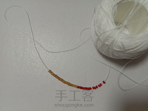 蕾丝线串上珠子,注意,先串里圈的颜色