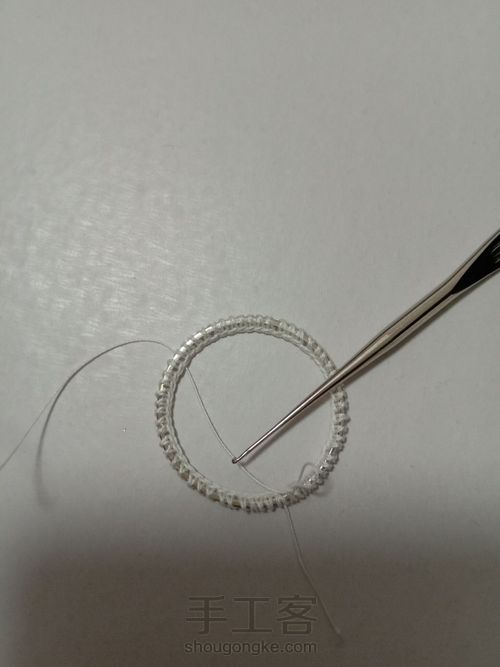 在闭口圈上钩满短针一圈