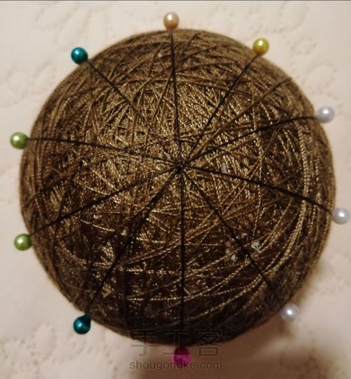 缠好素球后分好十等分,分球线用比素球线深一点的素线,因为后面是不凸显分球线的颜色的。第2步: