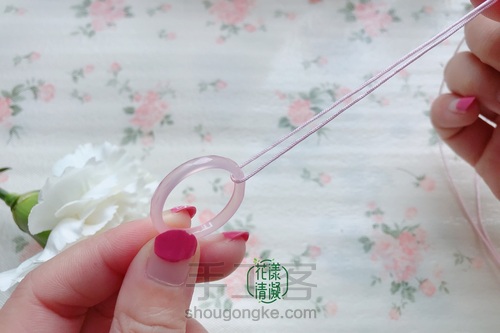 换成了粉晶平安扣+粉色流苏第4步: