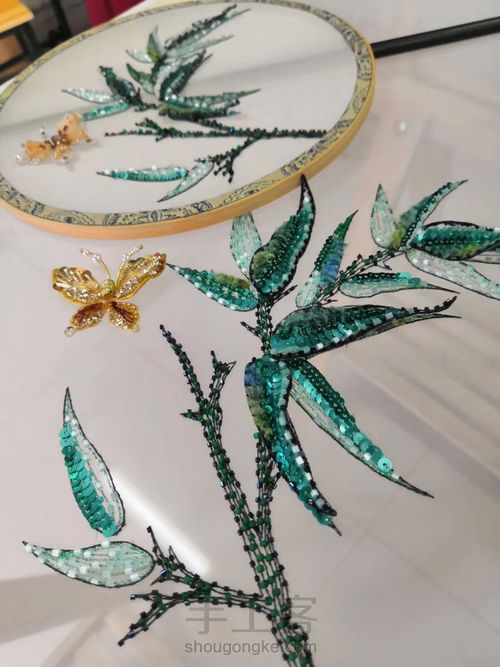 铁皮塑形,绣立体竹叶剪下来