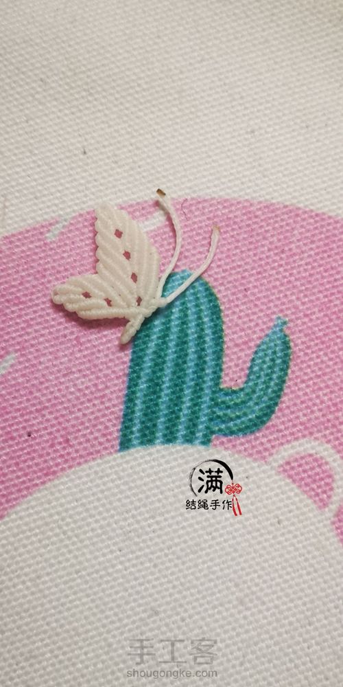 打一个反斜卷结,剪掉打火机烧一下固定蝴蝶触角。