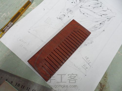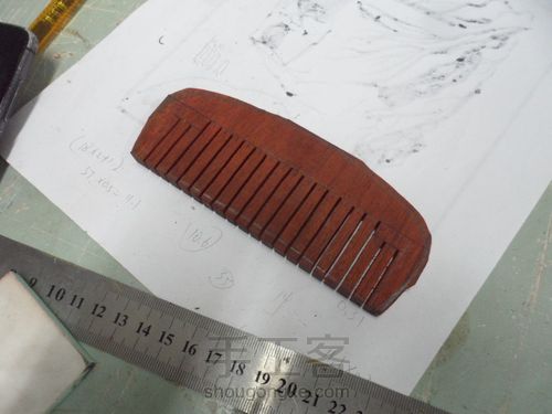 锯除多余部分,已经初步做好梳子大致形状轮廓,注意锯的时候尽量多留出一点边,以方便调整。接下来就需要用黄金错和砂纸进行调整