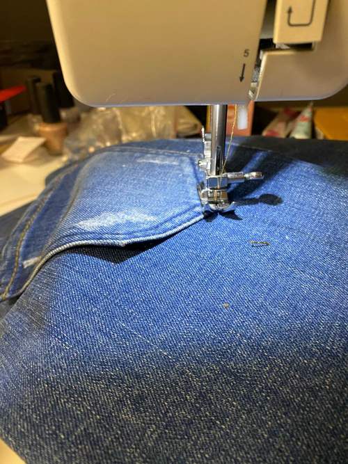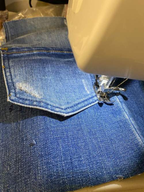 车缝好另一个裤兜的样子。