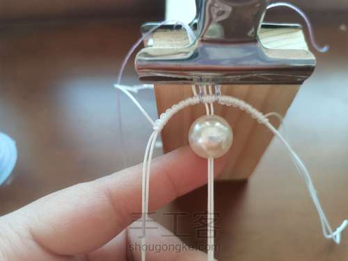 手拿的这根线在两根轴线上编雀头结,