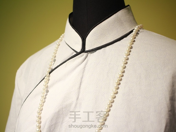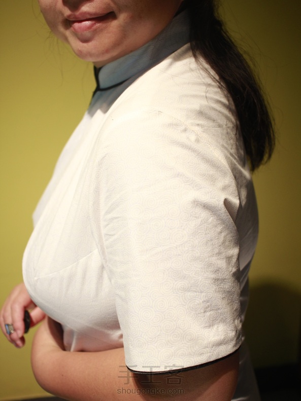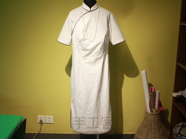 量身定做的线镶滚短袖旗袍做好了