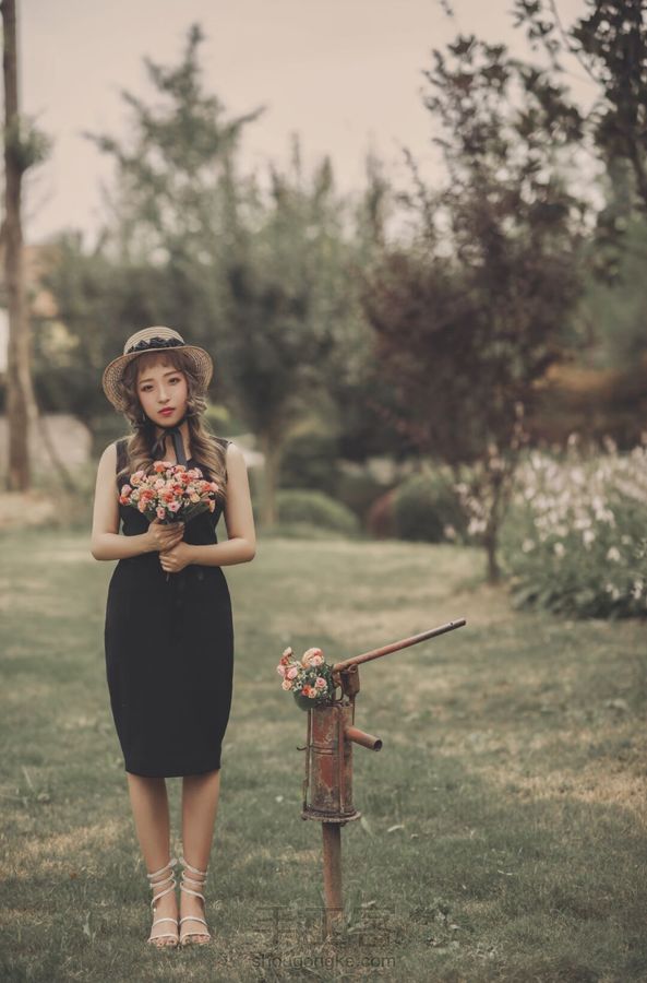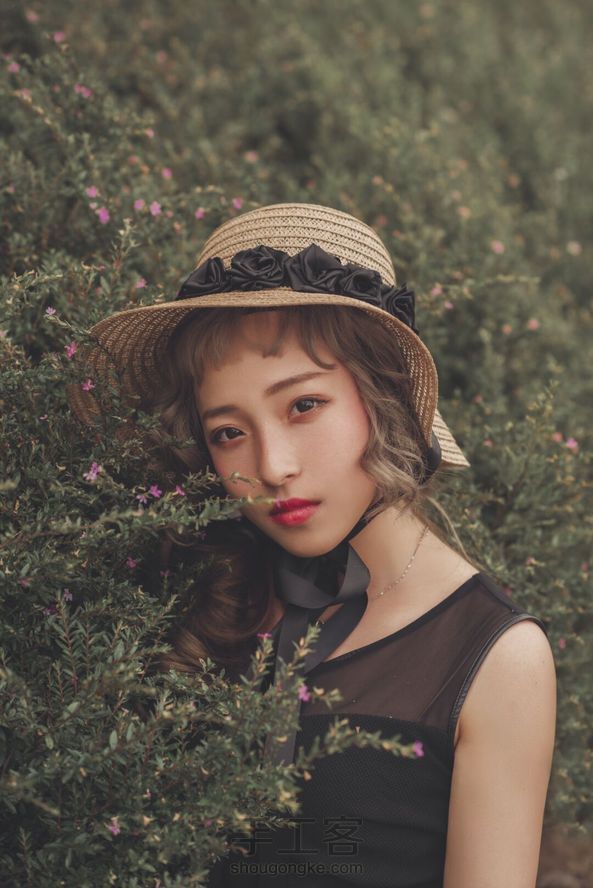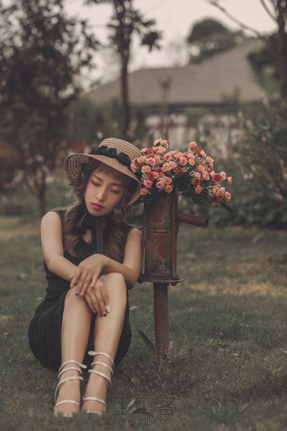 自己改造旧草帽,手做黑玫瑰,摄影用上效果不错。 自己摄影自己做道具,乐在其中。