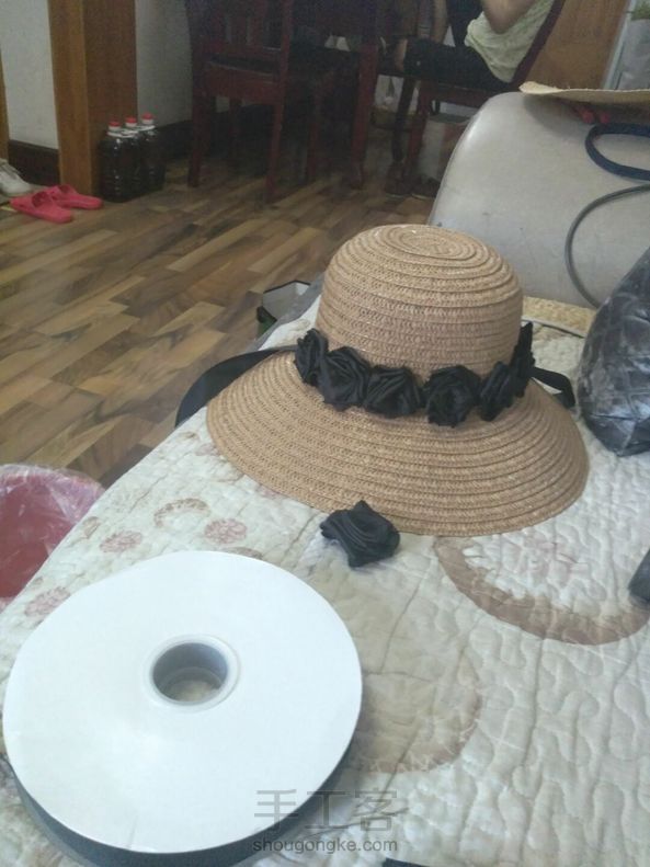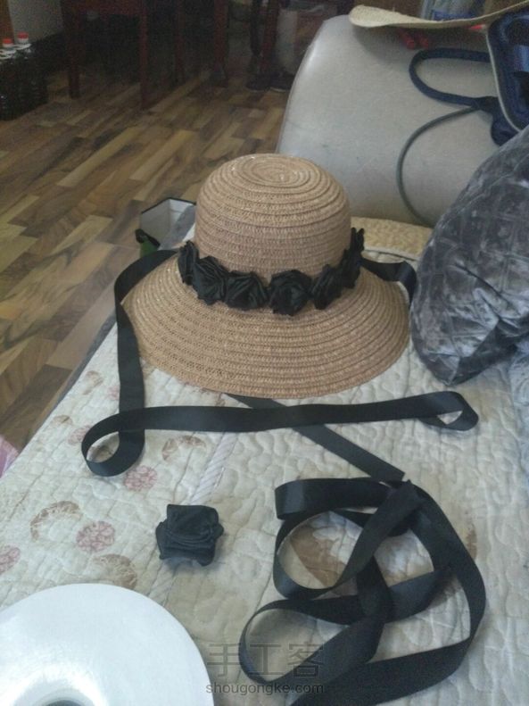 自己改造旧草帽,手做黑玫瑰,摄影用上效果不错。 自己摄影自己做道具,乐在其中。