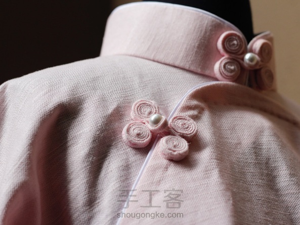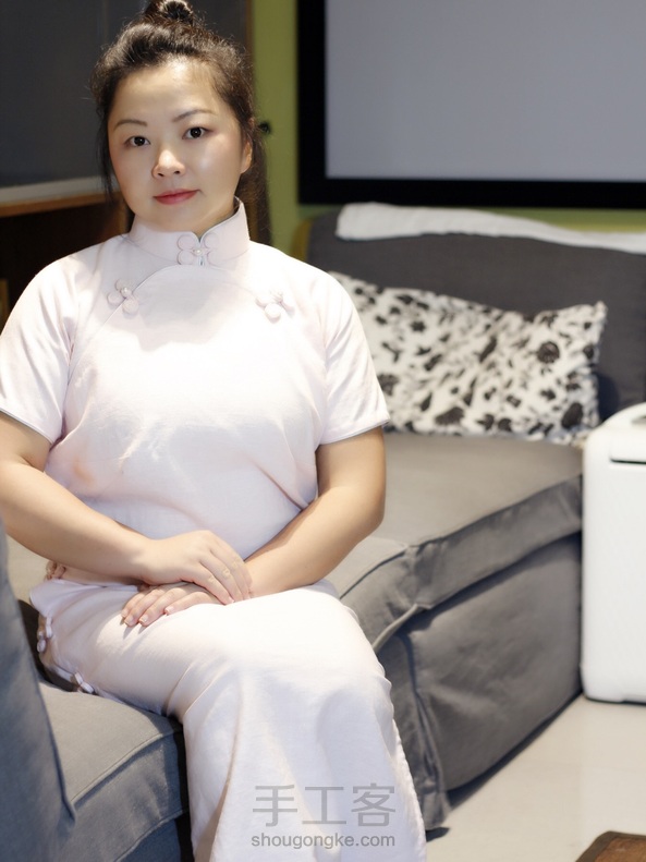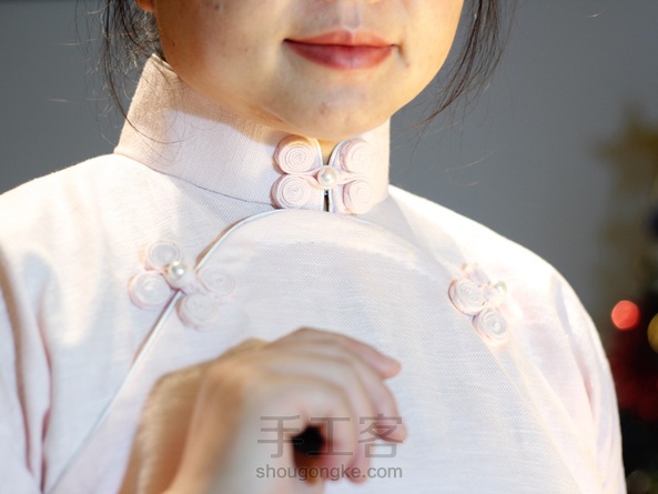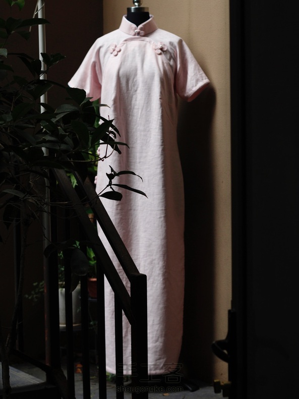 平裁短袖曳地、双衿、内贴边单旗袍、手工双盘香布扣、嵌线:)