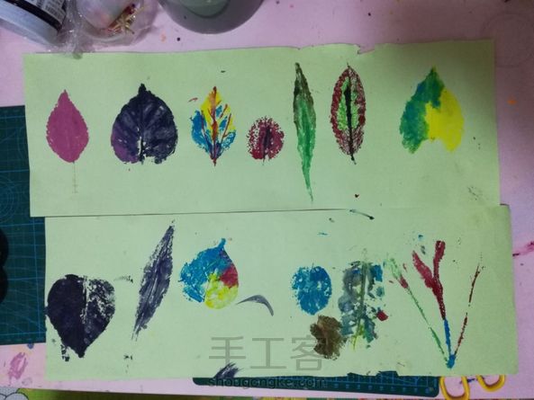 和孩子去花园摘的叶子,有了上次的经验,我俩这次的作品都好多了