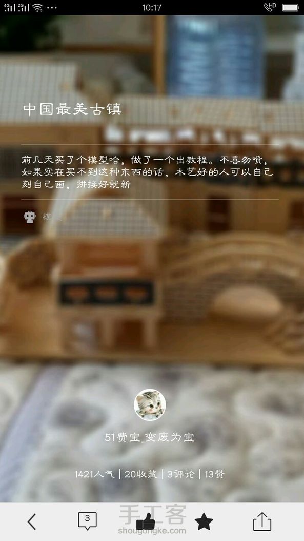 手工客管理员 回复 凤舞夏荷:您的这个是买的成品拼装一下就可以了,还有您之前说的个别图不清晰,您转载的图片全都模糊不清怎么能说是个别图片不清晰呢?不要骂人哦