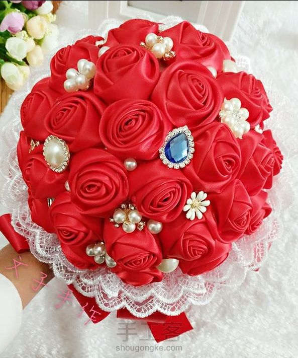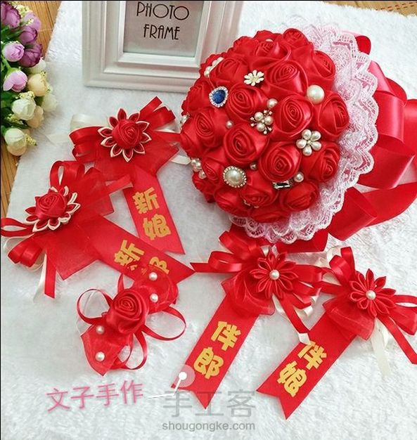 手捧花套装,耗丝带的工程~😊