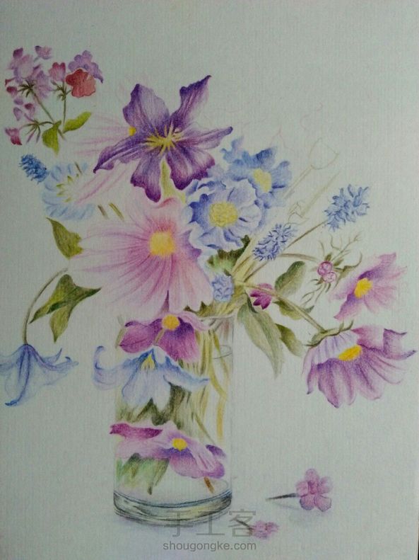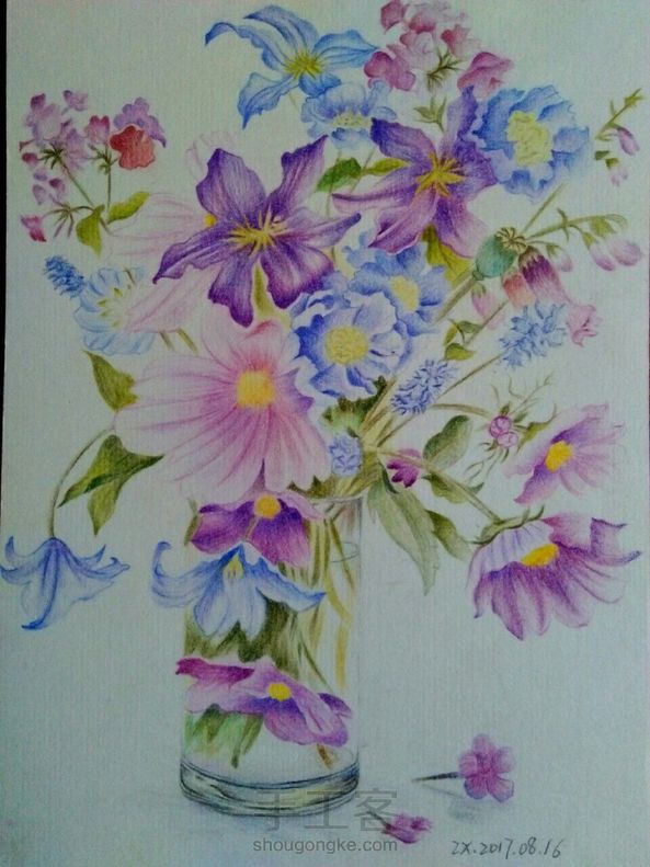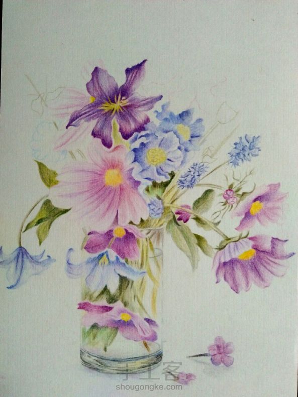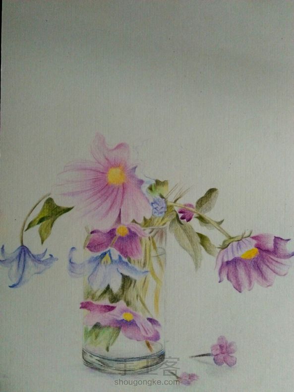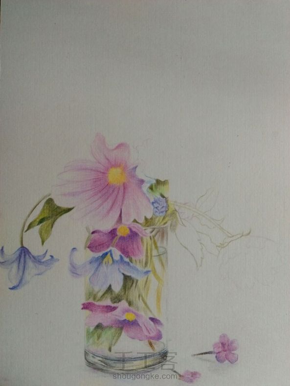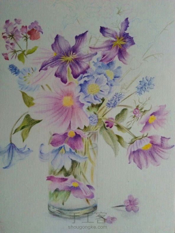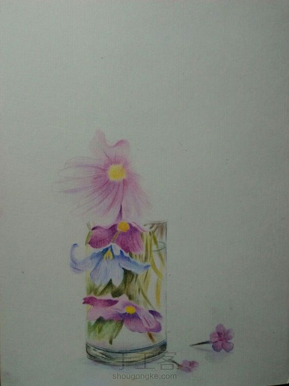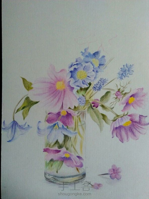 彩铅花卉 画技渣,构图渣, 彩铅渣,彩纸渣,像素渣 所以这幅画了一个礼拜,耗时二十多个小时的画被我取名为《五渣图》😂