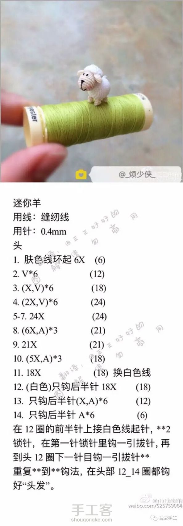 缝纫线钩编迷你小羊图解,当然你可以用粗线翻译整理见水印