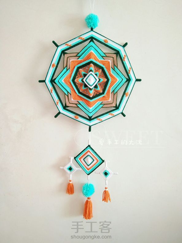 爱手工的大沈 回复 Cyan|念生活铺子:谢谢,是你颜色搭配得棒,做完成品挂起来很亮丽。