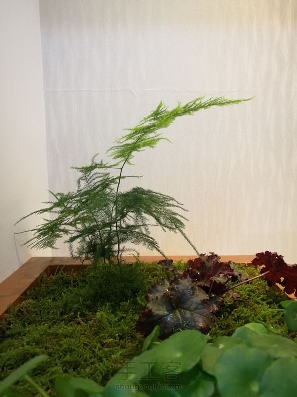 植物画框与国画相似,讲究‘意境’二字,墙为背景,植物为画。在配‘山石’,‘亭榭’,‘花鸟’,‘鱼虫’,就成为一个世界。