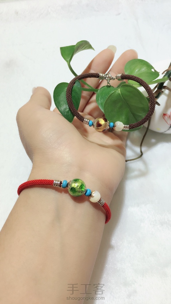 嘻嘻我又来晒晒咯,做了两根手链绳,这样搭配美?