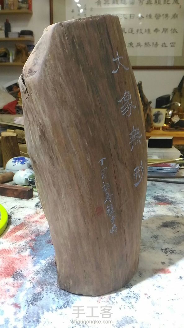 5斤重的黑油果香开云沉香[调皮] 不做过多雕饰,只刻«道徳经»句大象无形。