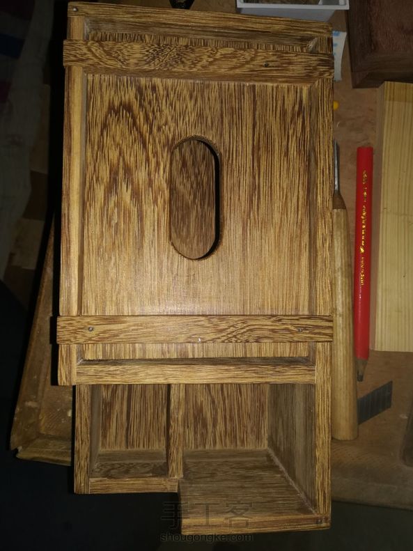 自己做的一个抽纸盒!晒晒!顺便问下后面是上油漆还是上木蜡油?有懂的大神指点下!先谢了!
