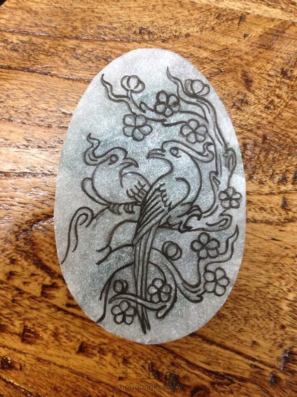 参照图谱完成的两件作品,和田玉的交货了,水沫玉的这个喜上眉梢奶奶留下送人了。