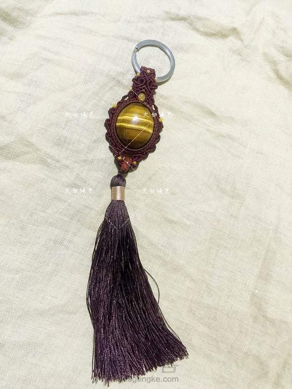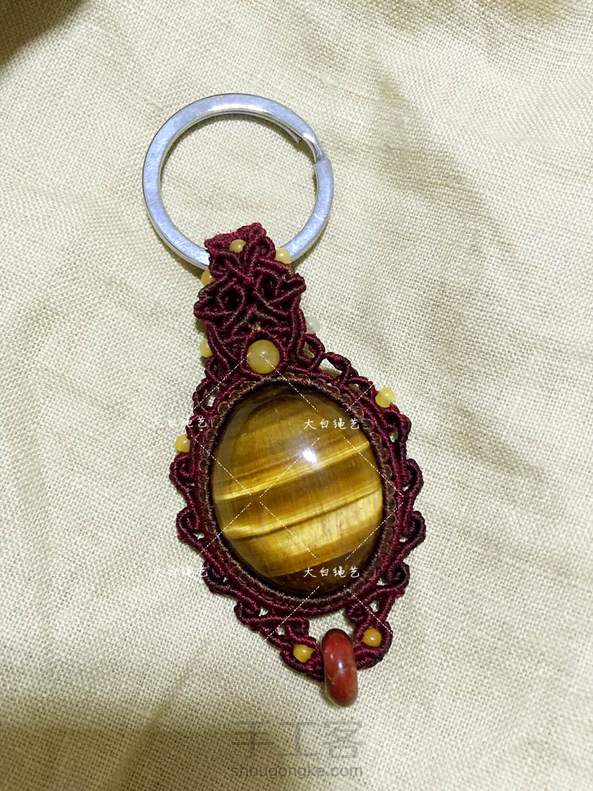 虎眼石钥匙扣,庄重酒红色复古花样纹饰,搭配黄玉珠子,虎眼石光泽灵动,请问加不加流苏好呢?🤔