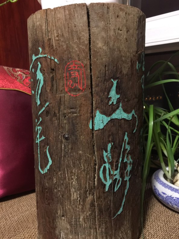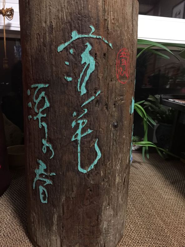 用路边捡的圆木桩捣鼓成的花架
