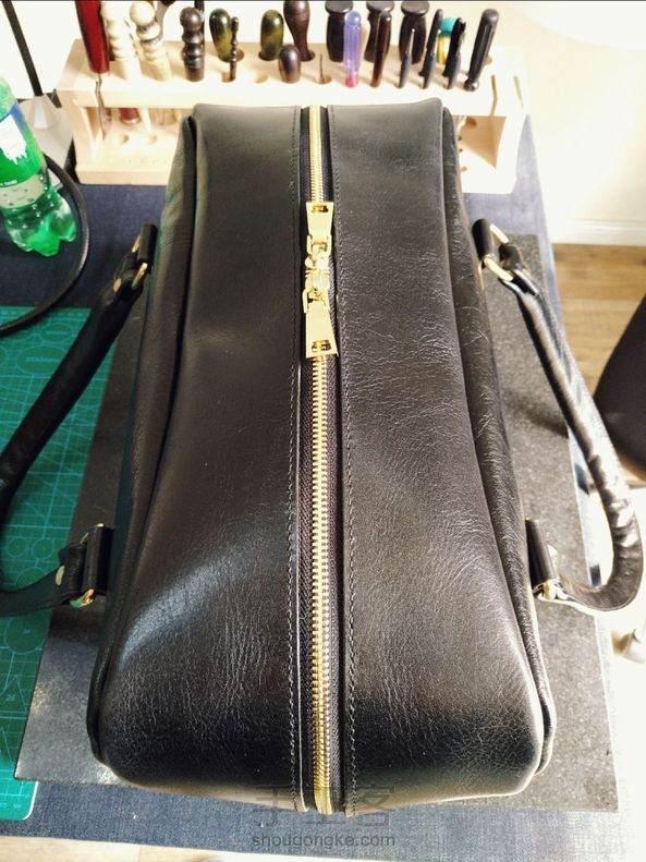 大号的波士顿旅行包,缝到手起泡😂面皮选的两种不同的牛皮,里皮是软羊皮。适合出远门时候用😛