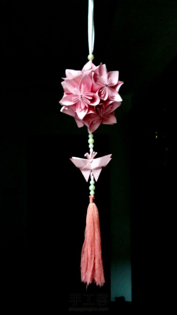 花了一下午的时间,做了这个花球,本来是要买穗子的,结果出去买东西,回来还是忘了,就只好拿了家里的线,自己做了一个穗子,虽然没有买的好看,但也挺耐看的。
