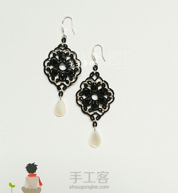 水滴白蝶贝梭编耳环
