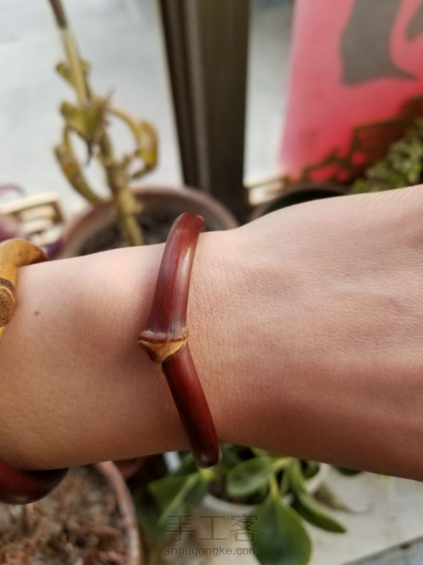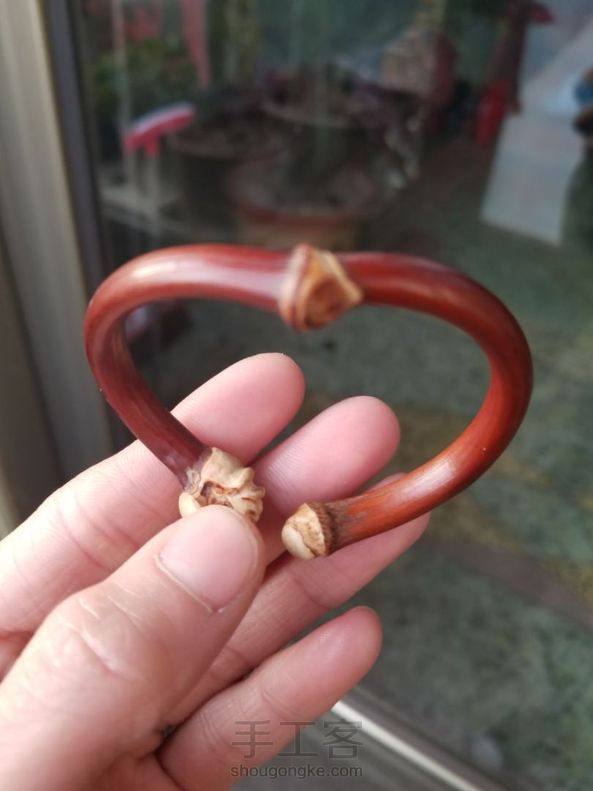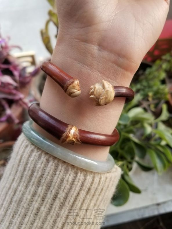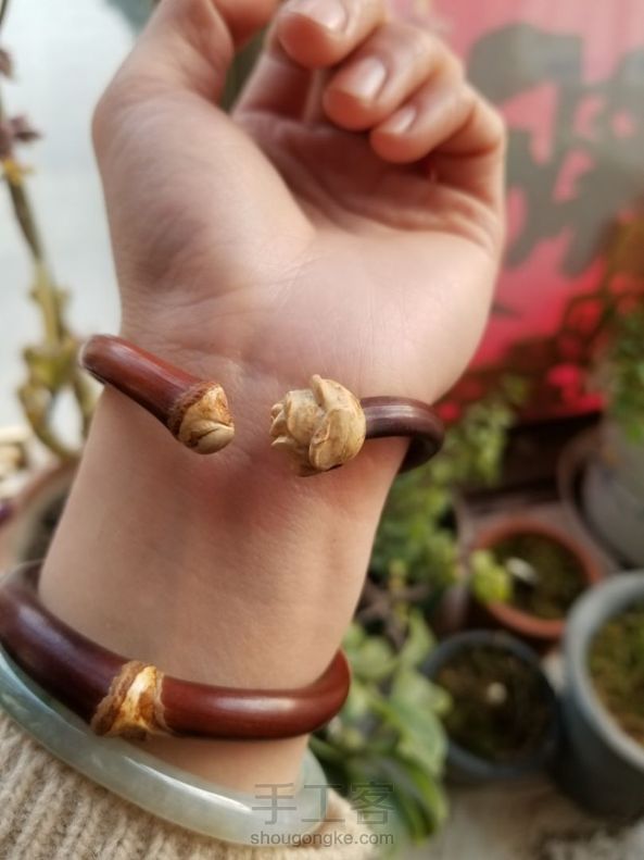 鸡血藤雕花心形镯