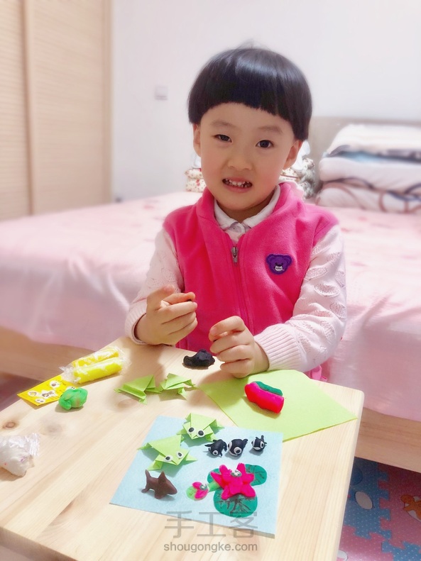 幼儿园作业,用橡皮泥做小蝌蚪。我直接做了一个小池塘。在荷花池中的🐸青蛙一家,还有各种状态的小蝌蚪,有腿的没腿的[调皮][偷笑]