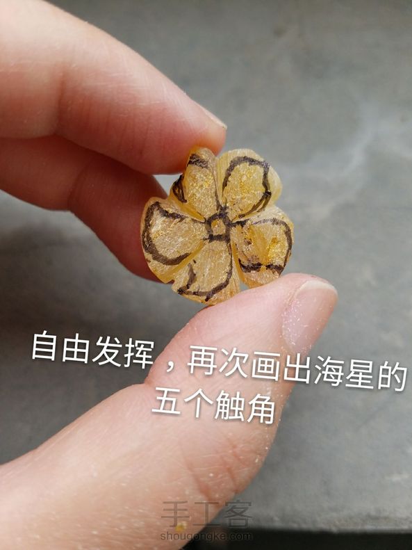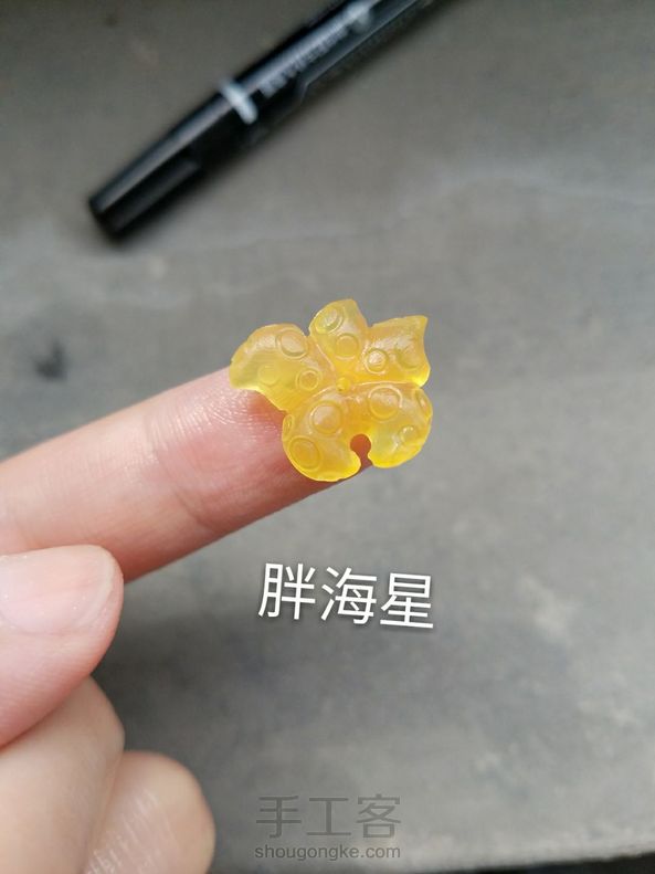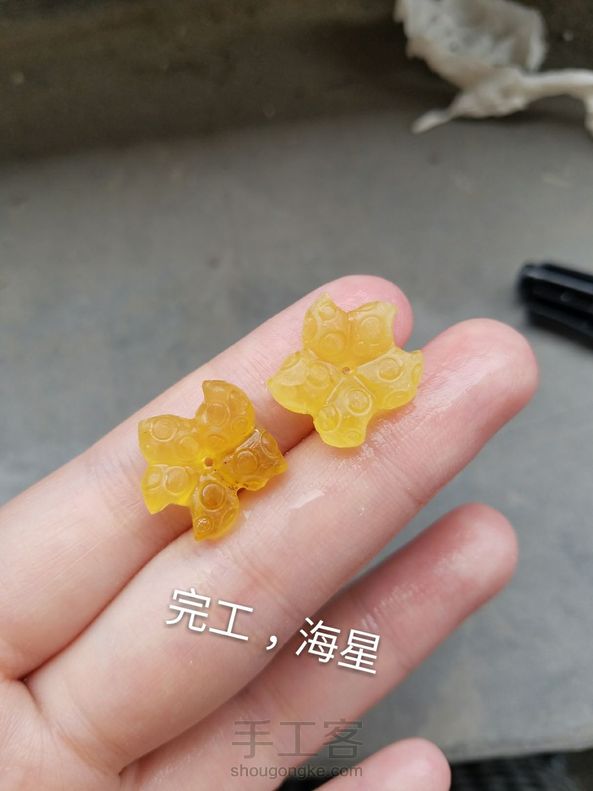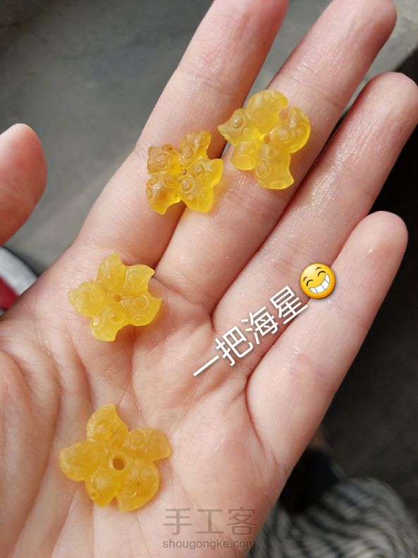]如何做一个萌海星<海星雕刻分享>原料:琥珀,蜜蜡原石,圆形