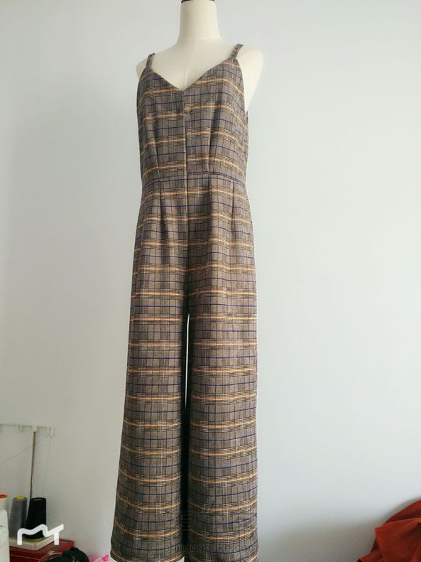 给自己做的阔腿背带裤