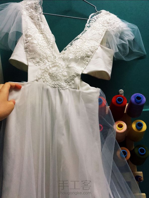 用自己旧的背带裙 拆开 改装成的婚纱(有教程) 整理中 本来打算用黑幕布拍照 ,结果想了想还是我的房间最好的地方 😁还在天台上拍了 上身效果非常不错 材料加起来不超过70RMB 我感觉我的旧衣服在瑟瑟发抖 期待(๑˙ー˙๑)下一件 哈